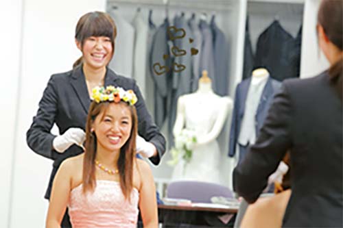 ウェディングドレスとヘアスタイルだけでなく、アクセサリーやブーケも含めたトータルコーディネートについて、提案力を磨きます。