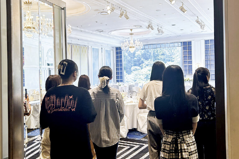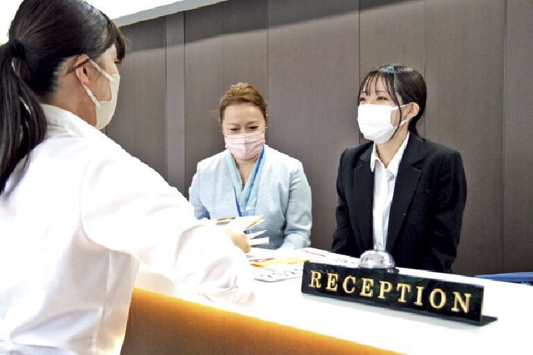 ホテル学科では、学内の実習室だけでなく「本物のホテル」を使用した研修を積極的に行っています。