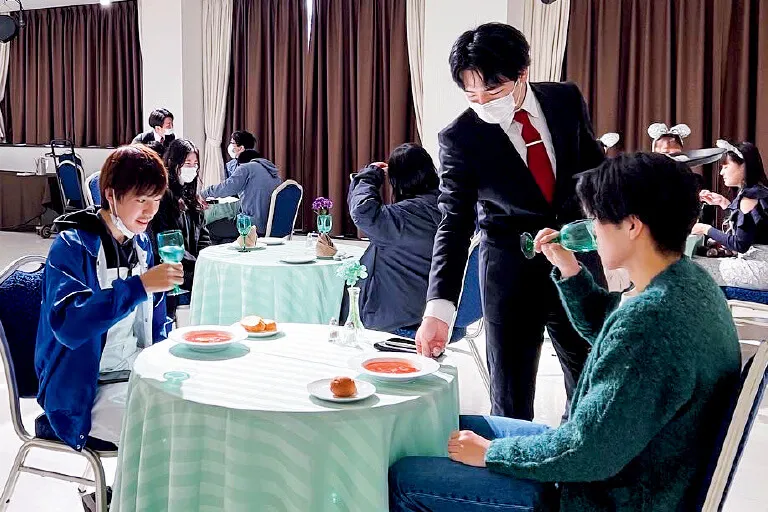レストラン業務で必要なサービス技術とサービスマインドを学びます。2年生になるとフランス料理のワゴンサービスやワイン、ユネスコ無形文化遺産に登録された日本の酒も実際のお酒を使って学びます。ソムリエやバーテンダーを目指す専攻では、卒業までに店舗運営できるレベルの力を身に付けます。