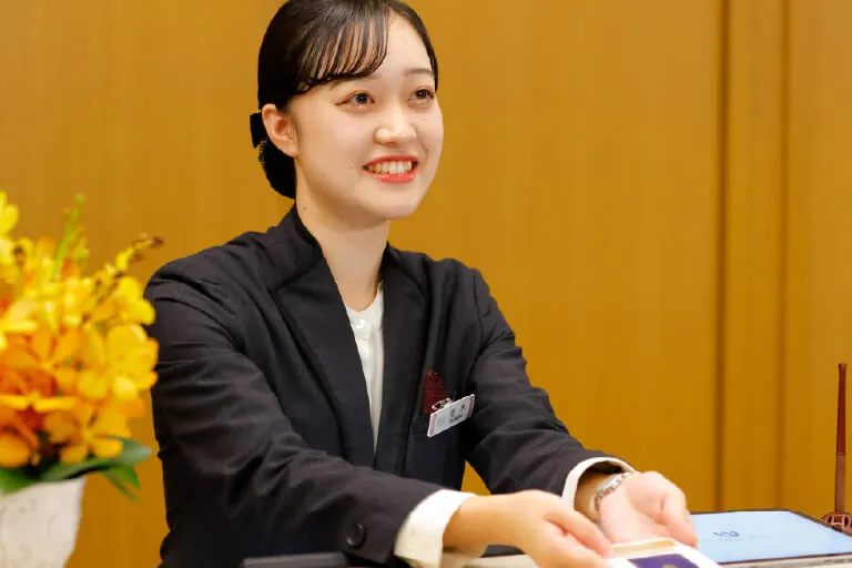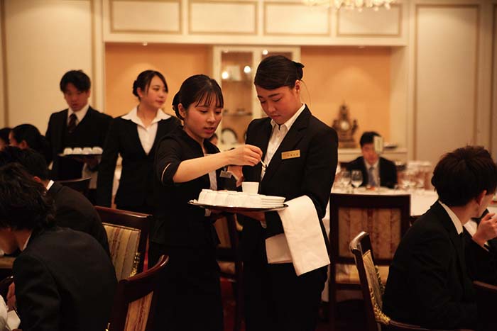 人を楽しませるホテリエを目指し、接客の基本からホテルを魅力的に演出するエンターテインメント性など、豊かな発想力を身につけます。