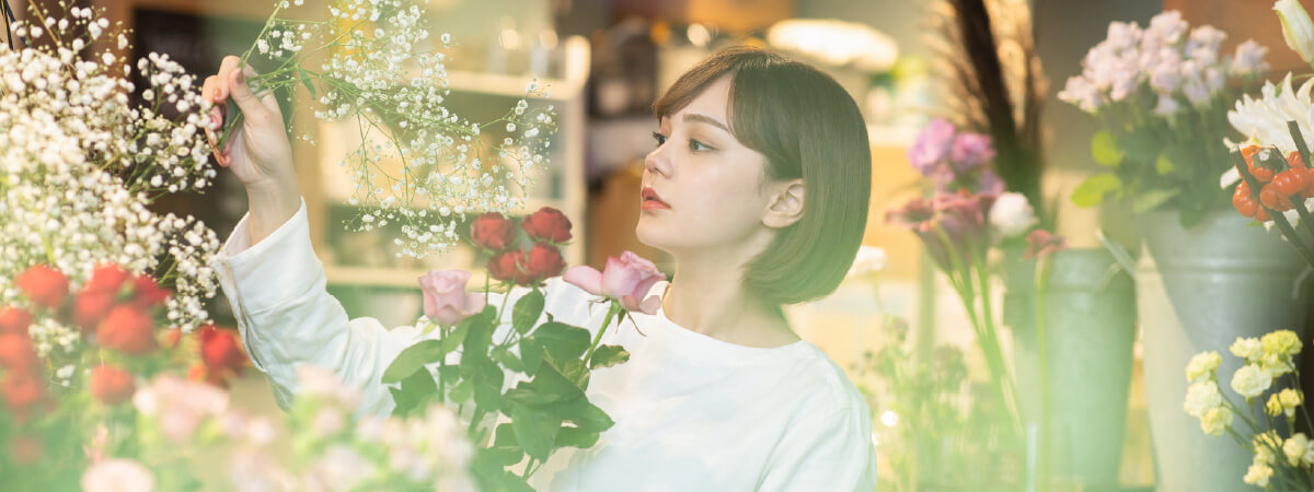 花を扱う仕事はフラワーショップだけではありません。冠婚葬祭やプレゼントなどさまざまなシーンで花は利用されており、花を装飾したりコーディネートしたりするプロフェッショナルも花を扱う職業です。